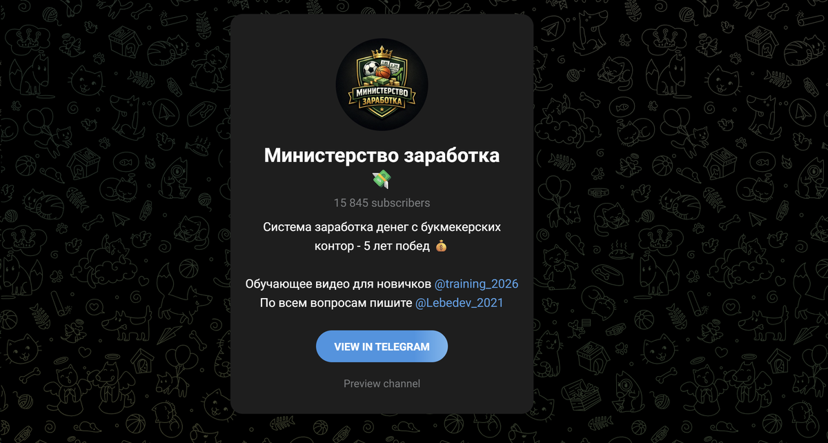 Меня уже давно просят проверить телеграм канал Министерство заработка, который ведет Владимир Лебедев, якобы он спортсмен и аналитик. Сделаем обзор, и покажем реальные отзывы на него. Узнаем, можно ли доверять его ставкам и прогнозам или это мошенник. К сожалению, беттинг уже давно стал одной из любимых ниш заработка для мошенников. Но отчаиваться не стоит — пусть редко, но все же находятся порядочные админы и их каналы, где реально можно научиться чему-то полезному и заработать. Итак, все по порядку. Канал создан в конце января 2024 года, то есть на данный момент ему почти 2 года. Все это время здесь с некоторыми перерывами выставлялись посты по ставкам на спорт. Количество подписчиков плавно подходит к 16 тысячам. Реакции открыты, люди постепенно начинают наращивать просмотры. Очередной перерыв в работе канала закончился под Новый год стремительной лесенкой от 10 тысяч до миллиона рублей. Админ даже немного перевыполнил собственный же план. Есть несколько положительных отзывов именн