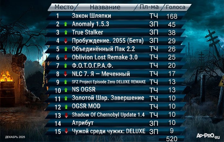 . ΠΠ° Π²ΡΠΎΡΠΎΠΉ ΠΏΠΎΠ·ΠΈΡΠΈΠΈ Π½Π΅ΡΠ³Π°ΡΠ°ΡΡΠΈΠΉ Β«Anomaly 1.5.3Β», ΡΠ»Π΅Π΄ΠΎΠΌ True StalkerΒ» ΠΈ Β«ΠΡΠΎΠ±ΡΠΆΠ΄Π΅Π½ΠΈΠ΅. 2055Β». ΠΠ°ΠΌΡΠΊΠ°Π΅Ρ ΠΏΡΡΠ΅ΡΠΊΡ Β«ΠΠ±ΡΠ΅Π΄ΠΈΠ½Π΅Π½Π½ΡΠΉ ΠΠ°ΠΊ 2.2Β», ΠΊΠΎΡΠΎΡΡΠΉ Π½Π΅Π΄Π°Π²Π½ΠΎ ΠΏΠΎΠ»ΡΡΠΈΠ» ΡΠ°Π½Π°ΡΡΠΊΠΈΠΉ ΡΡΠΆΠ΅ΡΠ½ΡΠΉ Π°Π΄Π΄ΠΎΠ½ Β«ΠΠΎΠ»Ρ ΠΡΡΡΡΠΏΠ½ΠΈΠΊΠ°Β» ΠΡΠ±ΡΠ°ΡΡ Π»ΡΠ±ΠΈΠΌΡΠΉ ΠΌΠΎΠ΄ - https://ap-pro.ru/mm/