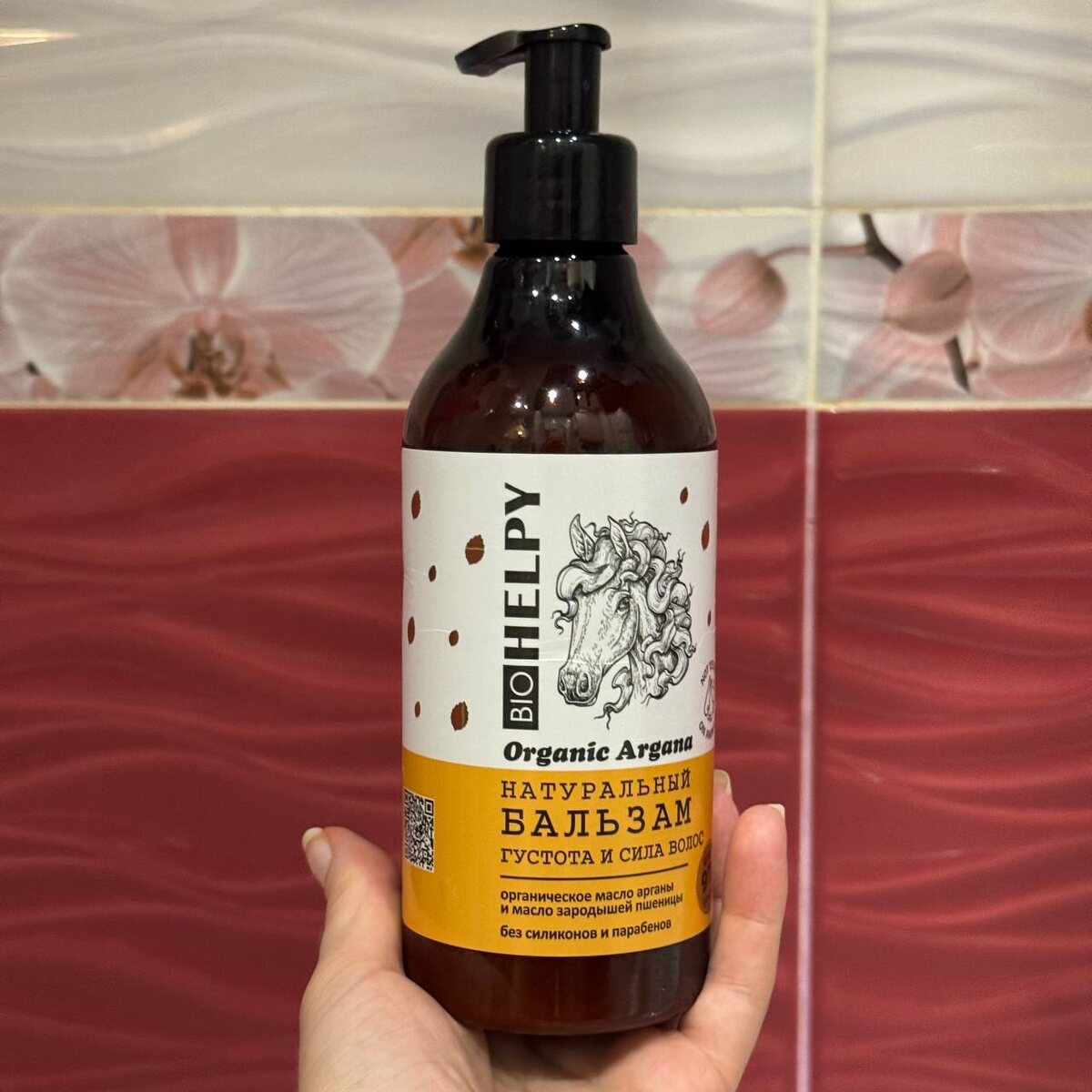 BIOHELPY бальзам-кондиционер для волос «Сила и густота» Продолжаю свой сериал «Бюджетные находки, которые обещают волосы мечты за копейки». Сегодня на кастинге - натуральный бальзам для волос BIOHELPY «Сила и густота». Я повелась на цену 123 рубля на WB, на картинку лошади с гривой а-ля «шампунь для пони» и, конечно, на надпись «натуральный». А что в итоге? Давайте разбираться. Флакон коричневый, прозрачный (остатки видно сразу, как счёт в Сбербанке после ЗП). Объём щедрый 400 мл. Дозатор пластиковый, но первое открывание - это прям мини-квест. Стрелочка «куда крутить» декоративная, пришлось изрядно повертеть. А дальше засада: после каждого применения бальзам засыхает на носике и новое нажатие превращается в борьбу с мини-пробкой. Особенно «приятно» проделывать это мокрыми руками, бутылка в душе прыгает, как кусок холодного масла на сковородке. Запах еле уловимый. Представьте смесь детского крема, простого туалетного мыла и чуть-чуть порошка «Лотос». Не раздражает, но и наслаждения нол