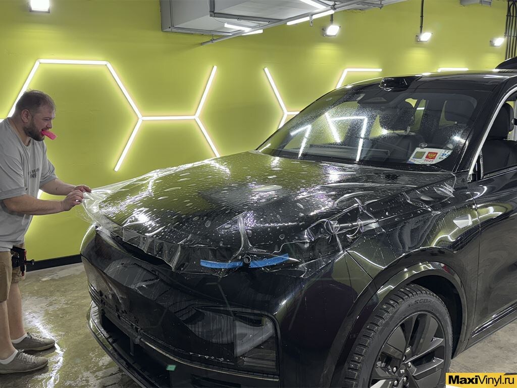 Мы твёрдо уверены, что на сегодняшний день оклейка кузова полиуретановой плёнкой не роскошь, а базовый минимум, – это высокая степень защиты, позволяющая сохранить первозданный внешний вид машины не на месяцы, а на долгие годы вперёд. Изначально машина была покрыта керамикой и перед оклейкой такое покрытие необходимо удалить, так так как пленка на такую поверхность просто не приклеится. Наш мастер произвел деликатную полировку всего кузова, тем самым удалив ненужный нам слой керамики и заодно убрал мелкие царапины на кузове. Кроме того, при первоначальном осмотре автомобиля нами были обнаружены две мелкие, но достаточно серьёзные царапины на крышке багажника и заднем бампере. Эти повреждения оказались настолько глубокими, что простая полировка оказалась бессильна. Поэтому наши специалисты выполнили локальную покраску повреждённых участков, чтобы автомобиль предстал перед процедурой оклейки в безупречном виде. Далее весь кузов был забронирован качественной полиуретановой пленкой толщино