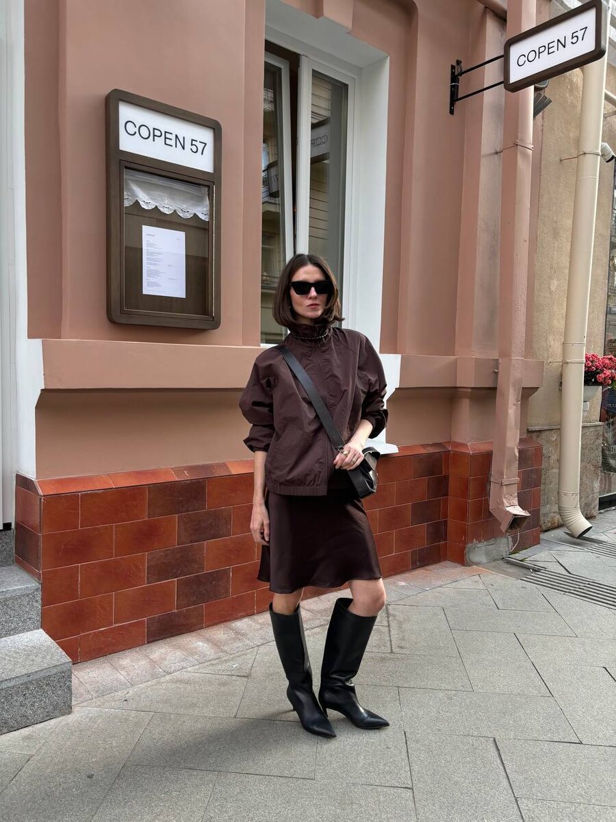 Обожаю, как Даша тонко работает с цветом, ее стиль — это полутона и аккуратная эклектика, носибельные и взрослые образы, в которых, тем не менее, всегда есть игра и легкость. И еще Даша лучше всех в тг (по моему скромному мнению) носит цветные колготки. Как бы ты сама описала свой стиль? Это точно микс стилей — мининимализма, кэжуала, романтики, бельевого стиля. Я миксую женственное и мужественное и называю это «женственная небрежность», но за этим стоит внутреннее ощущение себя, умение создавать гармоничные образы с интересными деталями, без натуженности и стараний. Небрежность — это прическа, закатанные рукава, подвернутый пояс юбки или брюки, заправленные в сапоги. До переезда в Москву долго работала байером томского ЦУМа — по факту формировала ассортимент магазина. Как это повлияло на твой стиль? Работа байера подарила мне свободу самовыражения и насмотренность. За год до выхода коллекции я могла знать, что будут носить люди. Скажу больше — я даже предопределяла, что будут носит