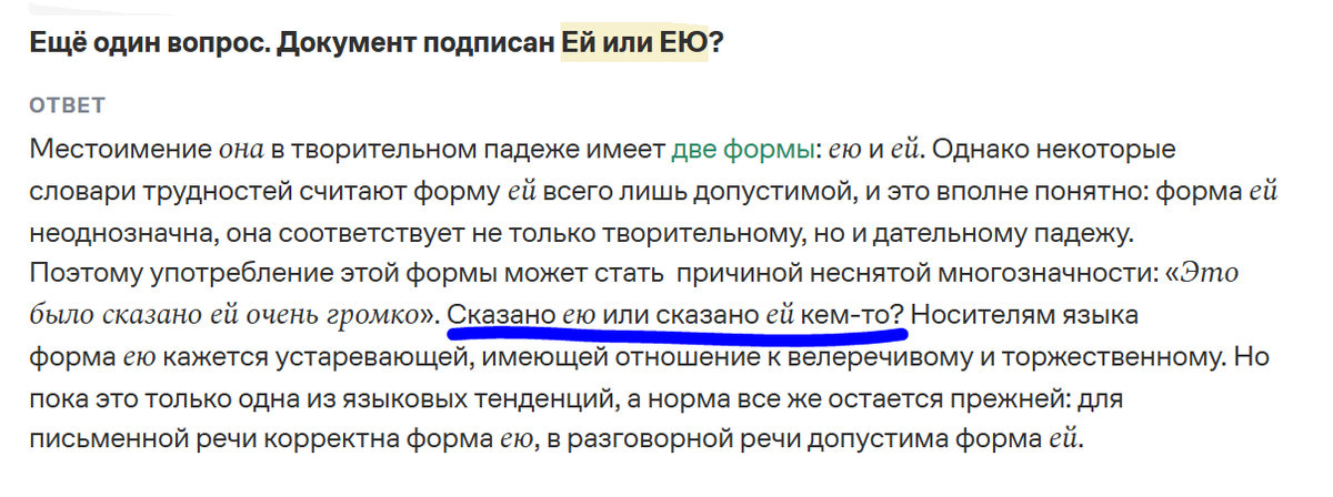 С сайта Грамота.ру: Совсем неожиданная развязка по заявлению об устранении описки. Хотя почему "развязка"? Скорее "завязка"! Судья завязала узелок. Себе на шее. Подала заявление 15 декабря. Не позже 13 января мне должен быть направлен ответ: 10 дней на рассмотрение и 3 дня на отправить ответ заявителю. Рабочие дни. Поскольку местоимения при неправильном склонении могут изменить смысл на противоположный, мириться с такой опиской не стала. Ибо "выплаченную ЕЙ сумму" означает, что кто-то заплатил мне. И "выплаченную ЕЮ сумму" означает, что кому-то заплатила я. Судя по реакции юристки в заседании, она вообще не поняла, о чём я сделала уточнение. Судя по тексту решения, судья тоже ни фига не поняла и в итоговый документ суда вошло местоимение "ей". Хотя сумму выплатила я. А не мне. С точки зрения визави: ЕЮ, а не ЕЙ. На такое решение я и подала заявление об устранении описки. А когда ознакомилась с материалами дела, ибо апелляцию писать я-таки буду, обнаружила, что моё заявление подшит
