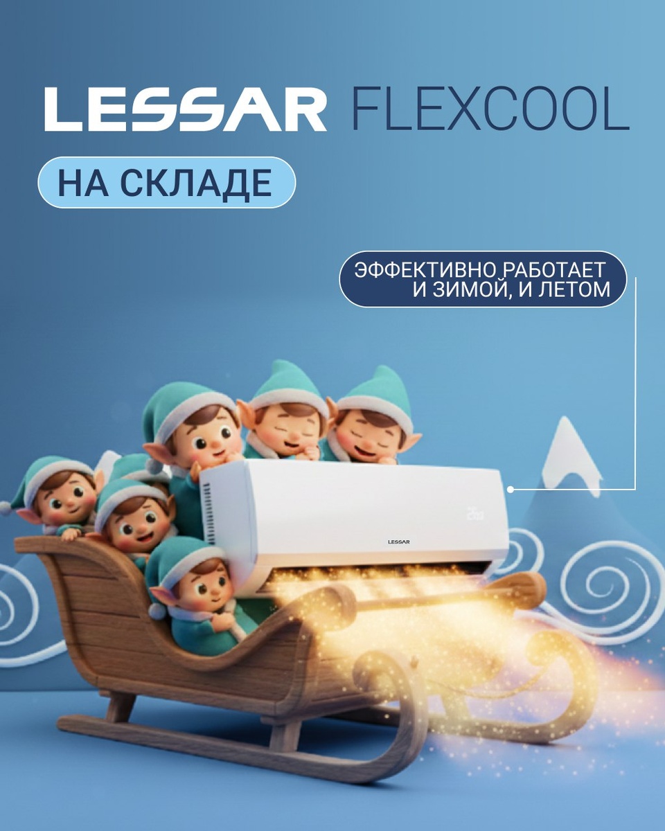 ? 🤔 Уже 12 января — пора возвращаться в рабочий ритм! И мы знаем, что вы можете предложить покупателям и зимой, и летом! Уникальный кондиционер LESSAR — FLEXCOOL! ❄️ Он эффективно работает на охлаждение при температуре наружного воздуха до +50 °C и на обогрев до -15 °C, что особенно актуально при перебоях с отоплением в квартире! Важным преимуществом нового поколения FLEXCOOL является встроенный Wi-Fi-модуль, благодаря которому сплит-системой можно управлять из любой точки с помощью мобильного устройства. Эту модель мы рекомендуем запасти на сезон, который уже совсем скоро! Оформить заказ: ➡️на сайте klimatprof.online ➡️у вашего персонального менеджера!