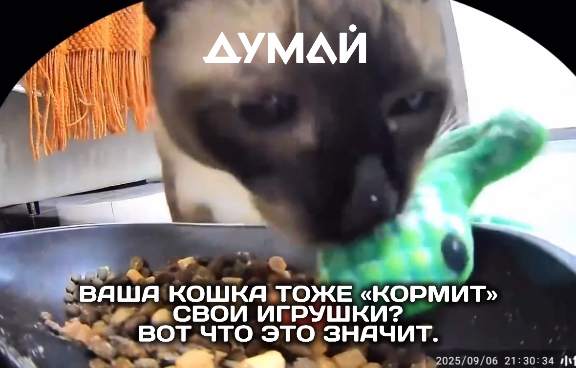 🐱🤝 Знаете ли вы, что кошки способны проявлять заботу, выходящую за рамки своего вида? На видео питомец, трапезничая у миски, кладёт рядом свою игрушечную змейку, будто приглашая её «покушать». Это может быть не просто игра, а проявление социального инстинкта. В природе кошки — хоть и одиночные охотники, но могут формировать прочные социальные связи. Перенося «добычу» (игрушку) к месту