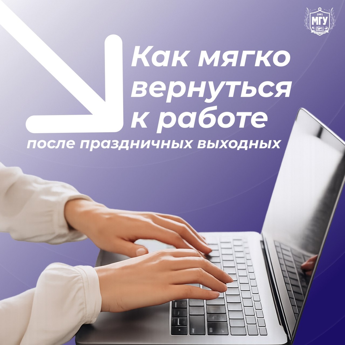 ▫️ Праздники остались позади, впереди — рабочие будни и новые задачи. 💙В карточках — советы от психологов сектора «Психологическая служба» МГУ имени А.И. Куинджи, которые помогут позаботиться о себе и поддержать внутреннюю мотивацию. Пусть первые рабочие дни пройдут легко и уверенно ✨ 👻 MAX|💙ВК|📝Дзен|🤩Сайт #МГУимениКуинджи