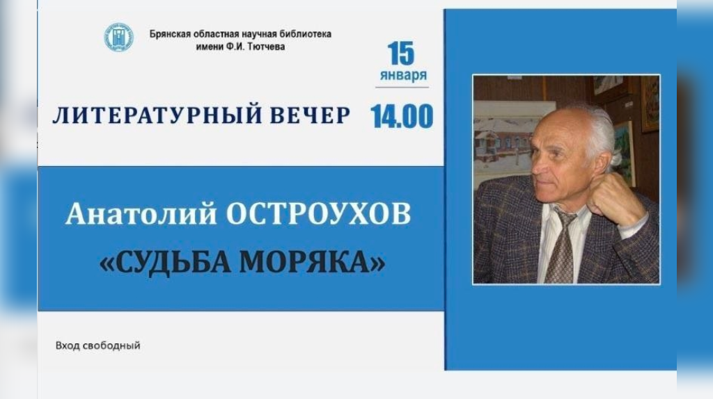 Любители литературы 15 января смогут встретиться с известным брянским автором и узнать о его творческих планах. Участники встречи также получат шанс приобрести книги с подписью писателя. Брянская областная научная библиотека приглашает жителей города 15 января в 14:00 на встречу с брянским писателем Анатолием Семёновичем Остроуховым. Автор является членом Союза писателей России и местной общественной писательской организации. Гостей мероприятия ожидает возможность лично пообщаться с писателем, познакомиться с его творческим путем и узнать о планах на будущие проекты. Каждый посетитель сможет приобрести книги с эксклюзивным автографом. Для справок организаторы рекомендуют обращаться к Марине Владимировне по телефону 8-919-295-79-13. Ранее мы сообщали, что известный брянский рок-музыкант Лис устроил рождественский «троллейбусник». 6+ В Брянске пройдёт встреча с писателем Остроуховым
