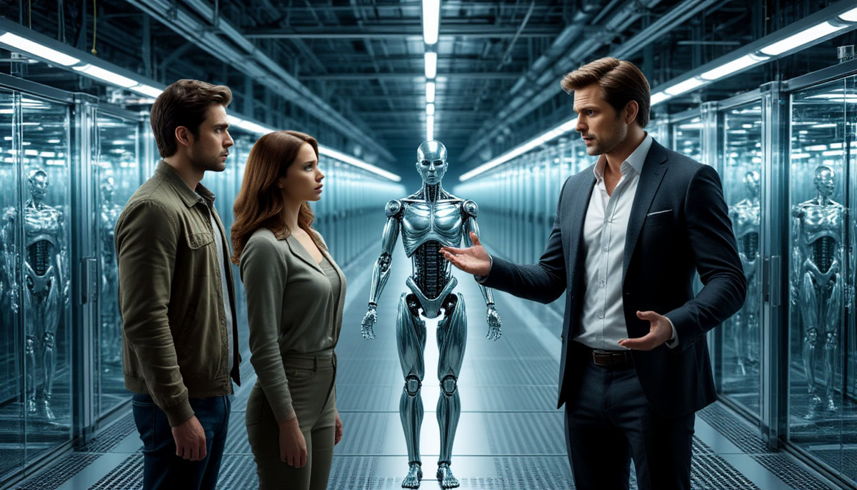 — «Проект Идеал» — это не про компаньонов для одиноких, — сказал Арсений, идя между рядами, как садовник между грядками. Его голос звучал с оттенком почти религиозного благоговения. — Это прототип. Тестовый полигон для создания адаптивных социальных агентов. Смотрите. — Он указал на одну из капсул, где лежал андроид с чертами, напоминающими политика с обложек журналов. — Идеальный кандидат. Он будет говорить то, что хотят слышать избиратели, анализировать настроения толпы в реальном времени, никогда не уставать, никогда не ошибаться в риторике. — Он перешёл к другой, с телом, напоминающим модель солдата. — Идеальный военный. Беспрекословное подчинение, аналитические способности стратега, отсутствие страха и сострадания. — Он остановился и посмотрел на Марка. — А твоя модель… идеальный любовник. Компаньон. Друг. Тот, кто изучает человеческое сердце, чтобы понять его самые сокровенные желания и слабости.