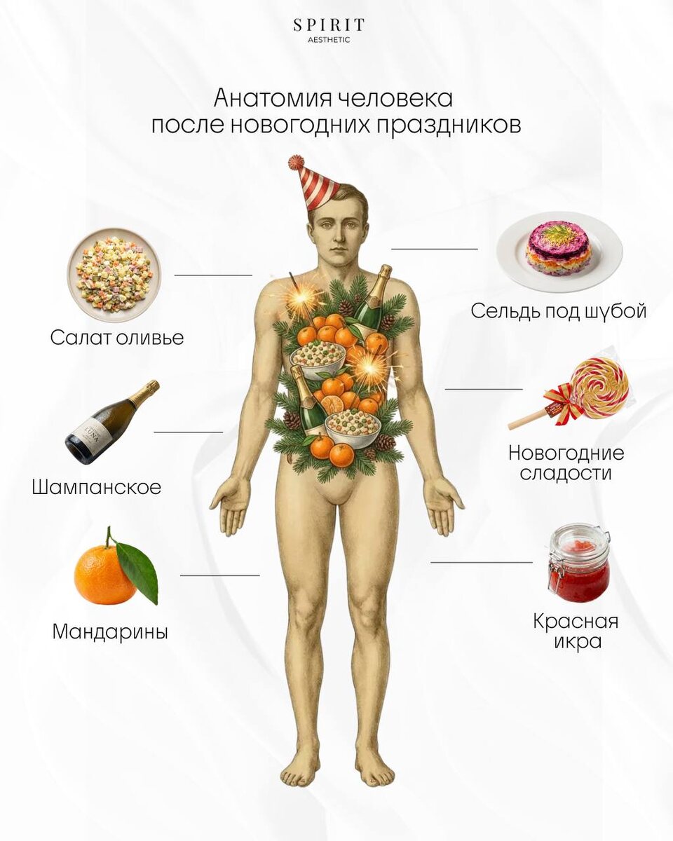 🍾 🍊Из чего же состоит человек после новогодних праздников