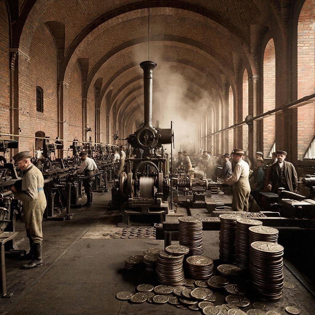 На его монетном дворе работало аж 8 таких машин, каждая из которых могла печатать до 85 монет. В минуту.