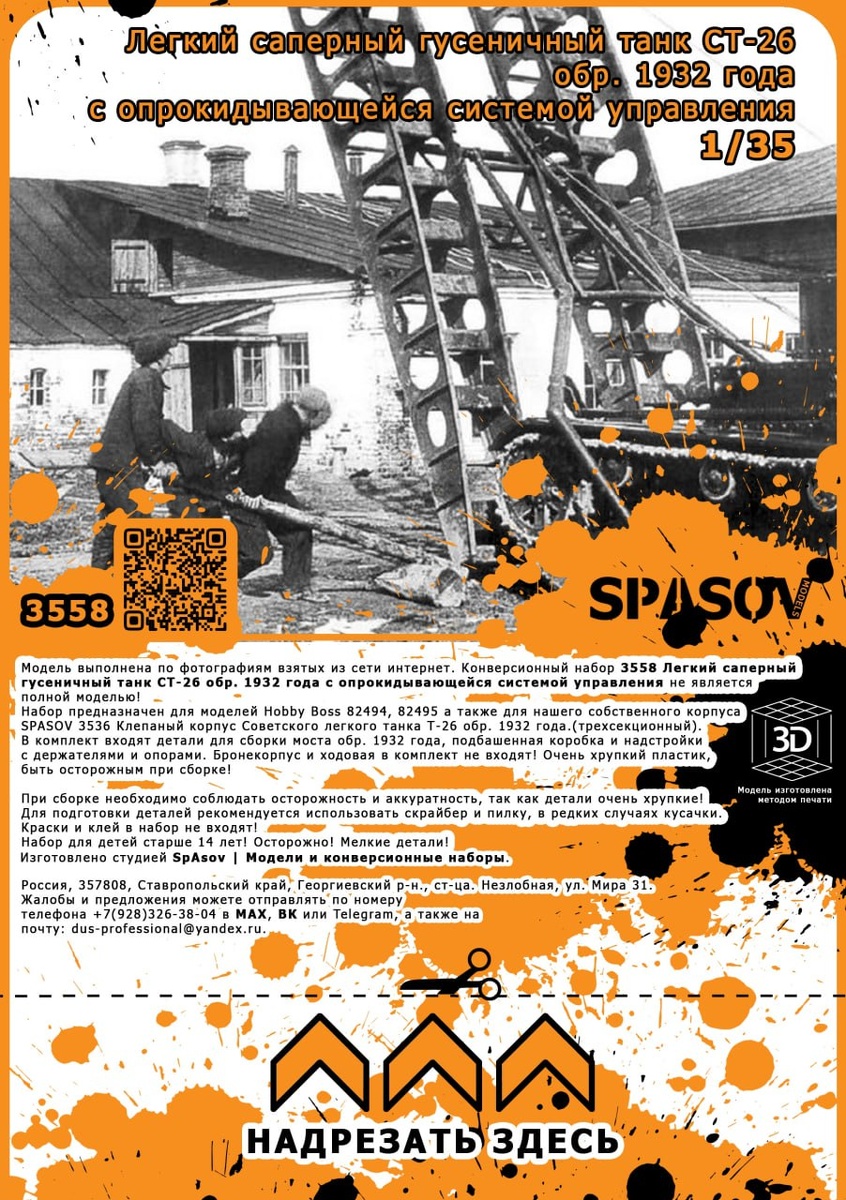Работа над набором 3558 Легкий саперный гусеничный танк СТ-26 обр. 1932 года с опрокидывающейся системой управления двинулась с мертвой точки и почти завершена! В ближайшее время мы покажем состав данного набора. А пока наклейка на коробочку выглядит вот так!