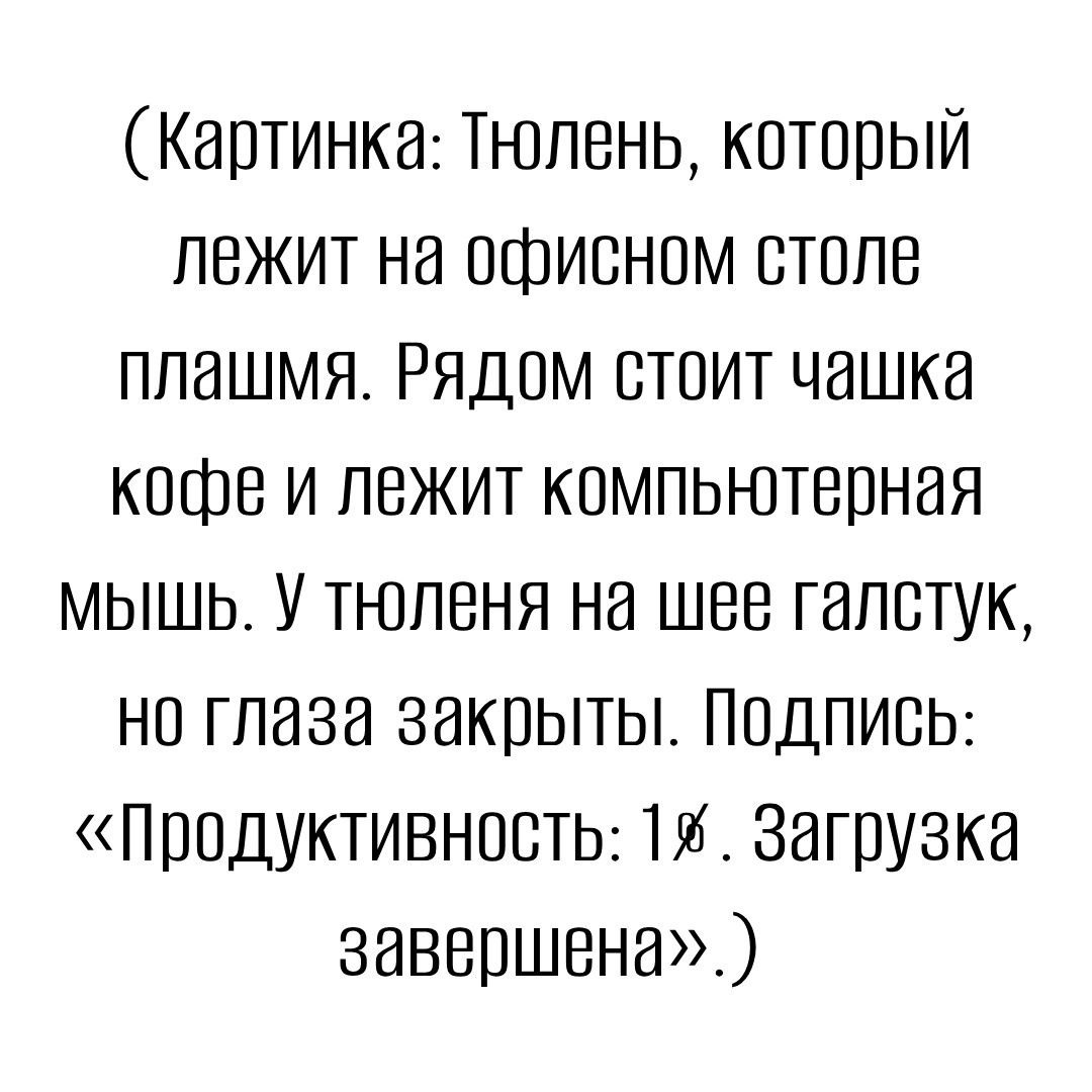 Мы пережили 12 января. Я наблюдал за вами сегодня через веб-камеры офисов, и это было похоже на документальный фильм о пингвинах, которых внезапно перевезли в Сахару. Растерянность, паника и немые вопросы в глазах: «Где мой диван? Почему я в штанах? Кто все эти люди?». Давайте честно признаем главные достижения этого дня: Теперь, когда вы дома, я официально разрешаю вам расстегнуть ту самую пуговицу.