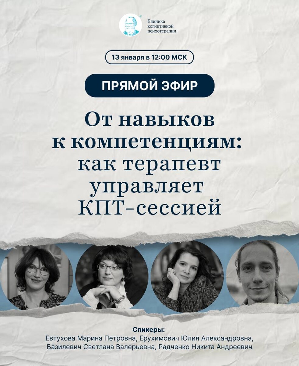 Прямой эфир для КПТ-терапевтов «От навыков к компетенциям: как терапевт управляет КПТ-сессией