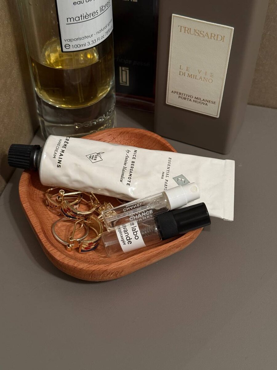 ! я сносила пробник chanel chance eau tendre (хотя у меня есть дымка) и ле лабошную ле лаванду 🫠 (Lavande 31 Le Labo). лаванда меня, признаться, просто покорила. люблю ароматы, которые меняются во время носки. этот из прямолинейной лаванды перешел в сладкие нероли и затем в чистенький такой порошочек. мне никогда не нравился бренд своими ароматами, кроме мускуса. эстетика же, напротив - привлекала. теперь я знаю, что мускус и лаванда - две мои любимки здесь. а у вас что есть и что нравится?