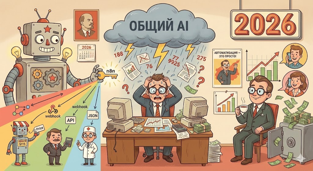Представьте: ваш бизнес тонет в рутине, а конкуренты уже летают на реактивных ранцах. Почему? Потому что они не тратят время на общие AI, которые болтают обо всем и ни о чем. В 2026 году универсальные модели вроде ChatGPT все еще хороши для чата с бабушкой, но для реального бизнеса нужны домен-специфические AI — те, что заточены под вашу отрасль, как лазерный скальпель под хирургию. А теперь добавьте к этому low-code платформу вроде n8n, и вы получите автоматизацию, которая не просто работает, а предугадывает нужды. Но если вы все еще копаетесь в общих инструментах, то рискуете остаться в прошлом веке.