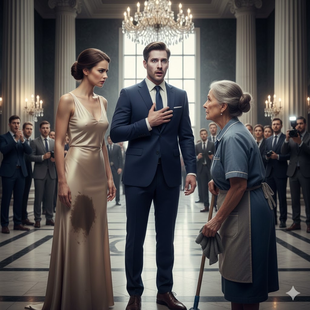 Марк обернулся. Его жена стояла посреди холла, брезгливо отряхивая подол своего эксклюзивного платья. На ковролине расплывалось мокрое пятно. Перед ней, съежившись и судорожно сжимая в руках швабру, стояла пожилая женщина в синей униформе клининговой службы. Её седые волосы выбились из-под косынки, а руки, натруженные и узловатые, дрожали.