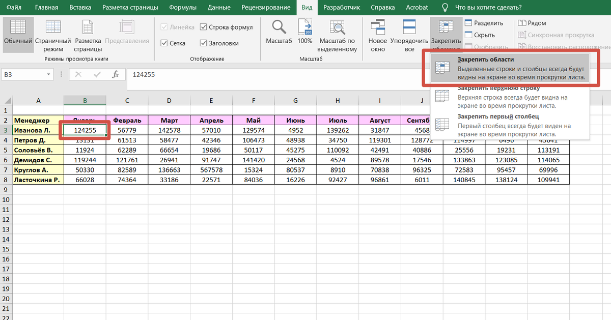 Как в Excel быстро закрепить несколько строк и столбцов одновременно