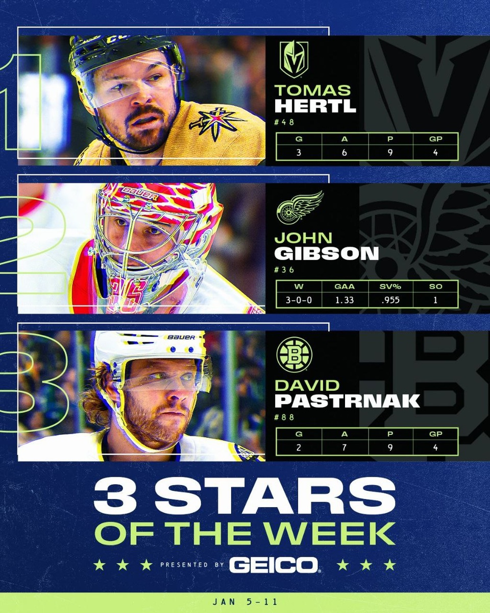 🏒 3 звезды прошедшей недели ⭐️ Томас Гертл ⭐️⭐️ Джон Гибсон ⭐️⭐️⭐️ Давид Пастернак #NHL #хоккей