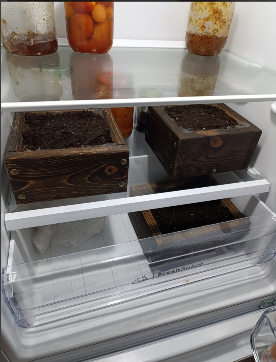 Добрый день всем! 30 октября мы с Марсиком посадили луковицы тюльпанов на выгонку. Кашпо хранилось в квартире, на нижней полке холодильника. Занималась я этим впервые.