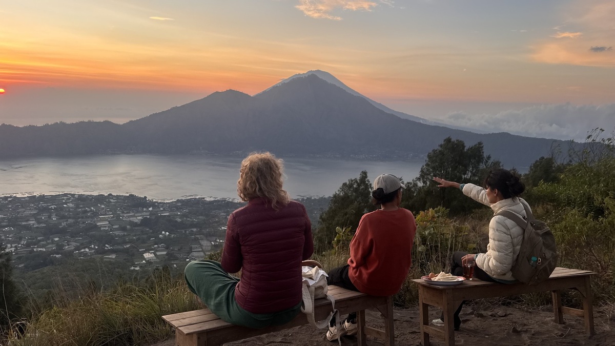 Поездка начнётся в предрассветной тишине, когда мир ещё спит, а в воздухе витает аромат свежезаваренного кофе. В процессе вы увидите чёрное лавовое поле, словно пришедшее из другого мира, и вулканические скалы, подмигивающие вам. Вершина Батура встретит вас незабываемыми рассветными красками и ощущениям, когда свет начинает пробиваться сквозь облака. После этого вас ждёт волнительное время в термальных источниках, где вода, нагретая от недр вулкана, подарит умиротворение и расслабление. Для завершения уикенда — обед в уютном местечке и плавный путь обратно через волшебные балийские деревни.