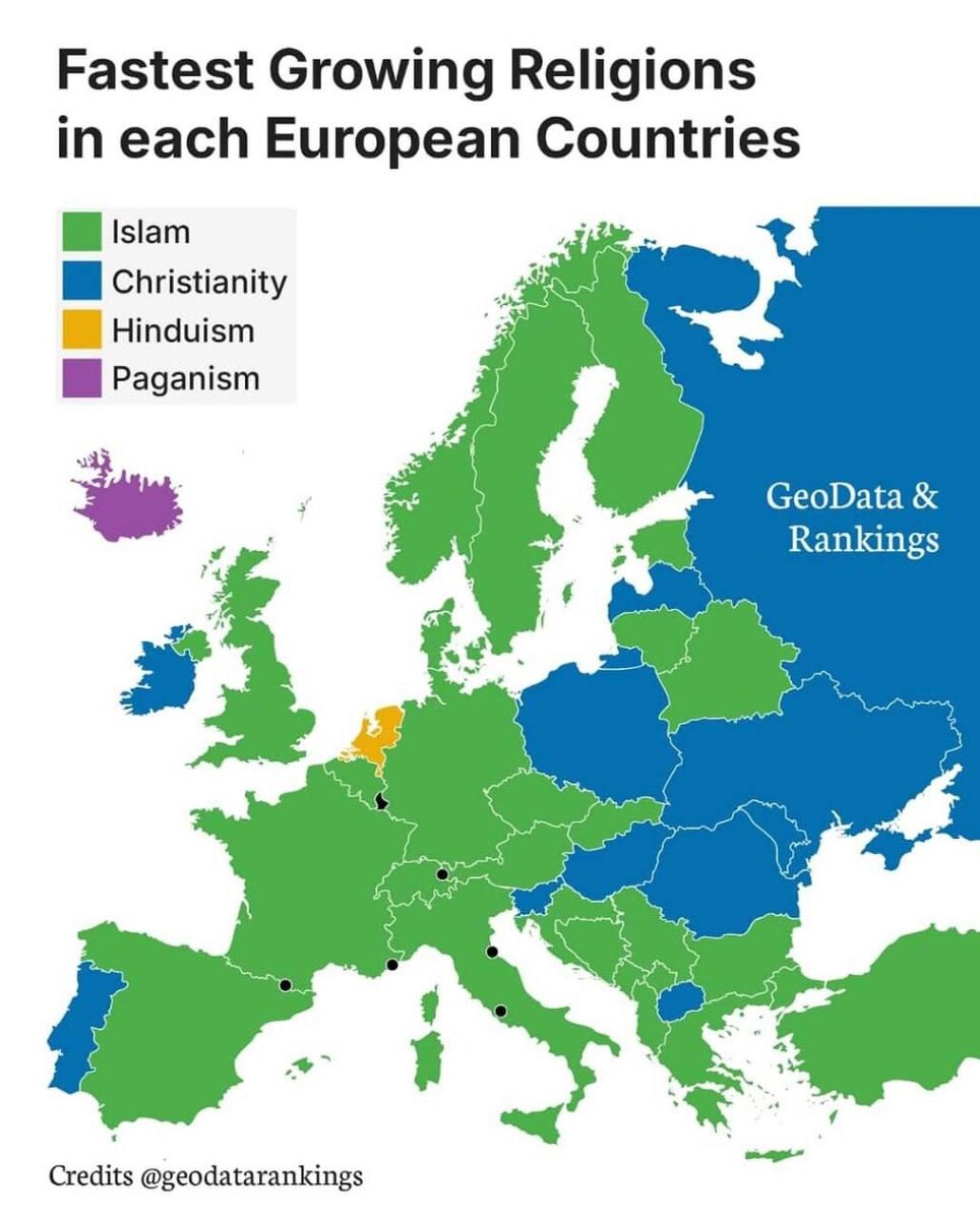 🇪🇺Самые быстрорастущие религии в европейских странах