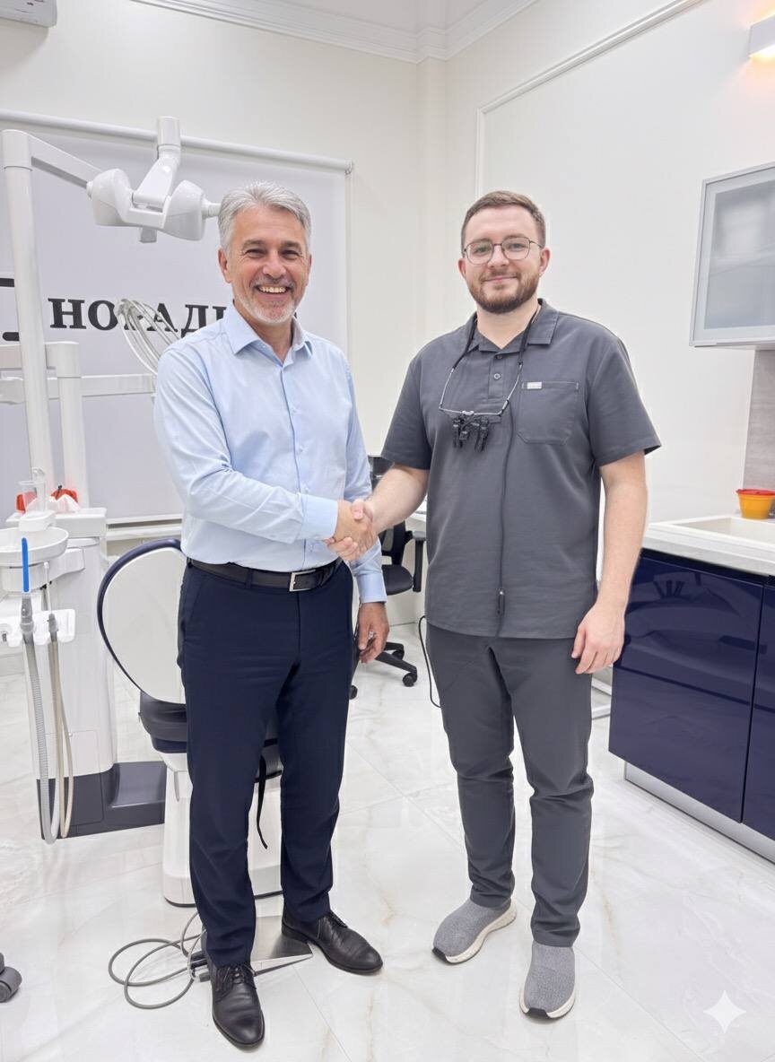 »! ✨ Порой путь к мечте требует времени, терпения и настоящей командной работы. И сегодня я, как руководитель отдела качества, хочу поделиться историей, которая стала для нас эталоном такой работы. 1,5 года. Для нашего пациента это был путь к новой улыбке. Для нас — ювелирный проект, где сошлось все: сложнейшая хирургия, высочайшая эстетика и, конечно, бесконечное доверие пациента. Имплантация стала первым и ответственным шагом. Работа требовала виртуозности: нам пришлось выполнить открытый синус-лифтинг — сложную процедуру по наращиванию костной ткани. Это фундамент, и мы заложили его на века. В кость мы установили имплантаты Neodent — надежность и предсказуемость которых мы уверенно гарантируем. На них позже заняли свое место коронки из диоксида циркония — прочные, биосовместимые и безупречно естественные. Продолжение…