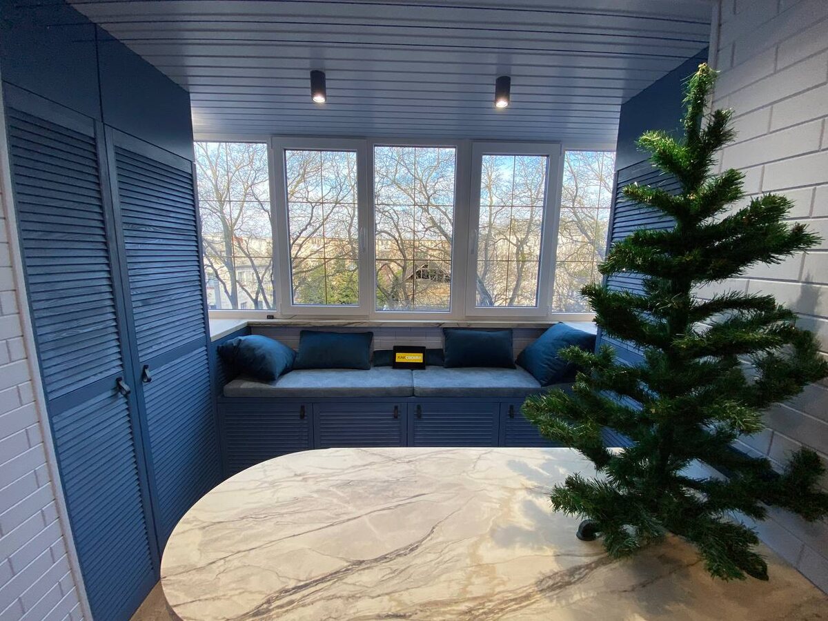 Балкон легко превратить в пространство, которое подстраивается под ваше настроение, время года и образ жизни. Это не просто остеклённый кусочек улицы, а живая часть дома. Балкон может стать личной зоной, куда можно уйти от суеты, но при этом оставаться «дома». Окна во всю ширину открывают обзор на город и создают ощущение небольшого панорамного салона. Мягкая серая скамья вдоль окна образует уютный подиум, на который хочется забраться с пледом и горячим чаем. Синие подушки добавляют глубины и делают интерьер более насыщенным, но не кричащим. Выбранная палитра играет ключевую роль в ощущении балкона. Сочетание синего, серого и белого создаёт атмосферу спокойствия и визуальной свежести. Такой балкон легко становится местом притяжения для всей семьи. Здесь можно завтракать, играть с детьми, общаться с гостями или проводить семейные вечера. Чтобы балкон не превратился в склад, важно сразу заложить удобные решения для хранения. Тогда даже большое количество вещей не будет бросаться в глаза.