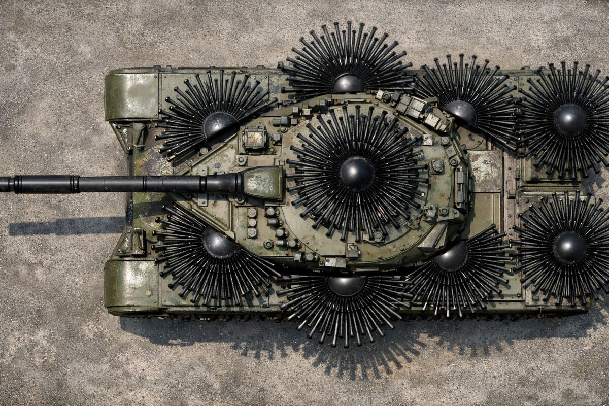В России придумали простое модульное устройство защиты от беспилотников, которое можно устанавливать на танки, бронетехнику, автомобили и стационарные объекты без сварки и вмешательства в конструкцию. Разработку уже зарегистрировали в патентной базе ФИПС. На иллюстрациях к патенту устройство показано установленным на танке, где оно прикрывает уязвимые зоны от атак ударных БПЛА и сбрасываемых боеприпасов. В отличие от сложных каркасных «мангалов», модуль монтируется за минуты и не требует доработки корпуса. Основа конструкции — компактное основание с магнитным креплением. На нём с заданным шагом закреплены гибкие пики, которые в рабочем положении формируют лучеобразную полусферу над защищаемым объектом. Такая геометрия повышает вероятность контакта с пропеллерами дрона даже при наличии защитных кожухов. Пики авторы предложили выполнить из полимерных материалов или металла. Но во втором случае им потребуются пружины — при столкновении элемент отклоняется, гасит нагрузку и возвращается в