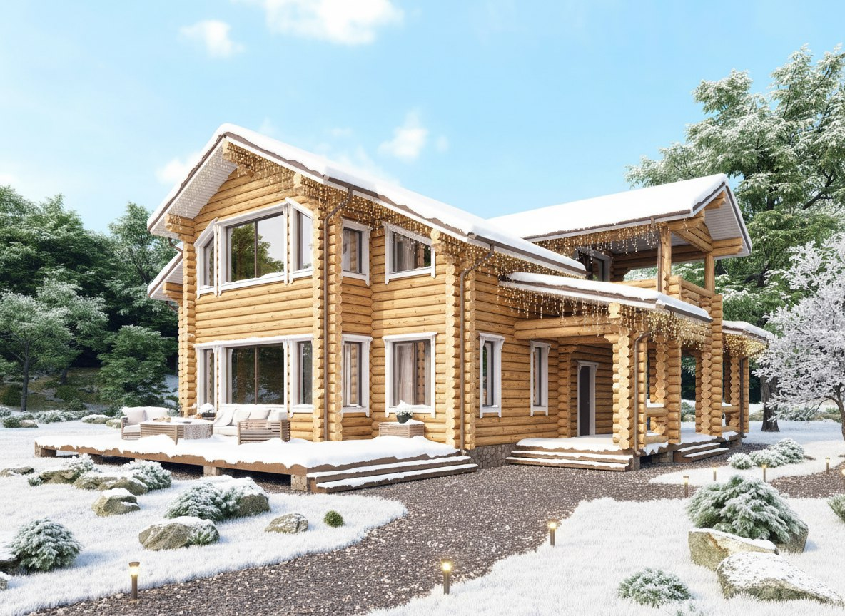- Психологическое воздействие: Гармония, спокойствие, экологичность, фундаментальность. Такой дом психологически воспринимается как надёжный, честный, «свой». Он не спорит с ландшафтом, а становится его продолжением.