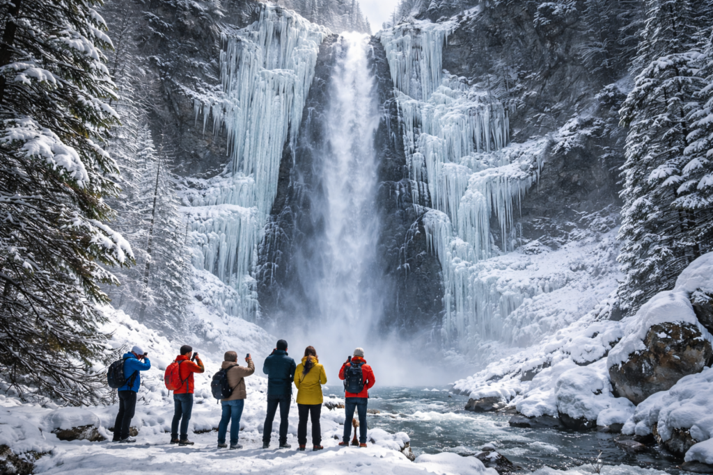 Сначала было красиво, потом страшно: туристы сняли обрушение замерзшего водопада в Эстонии