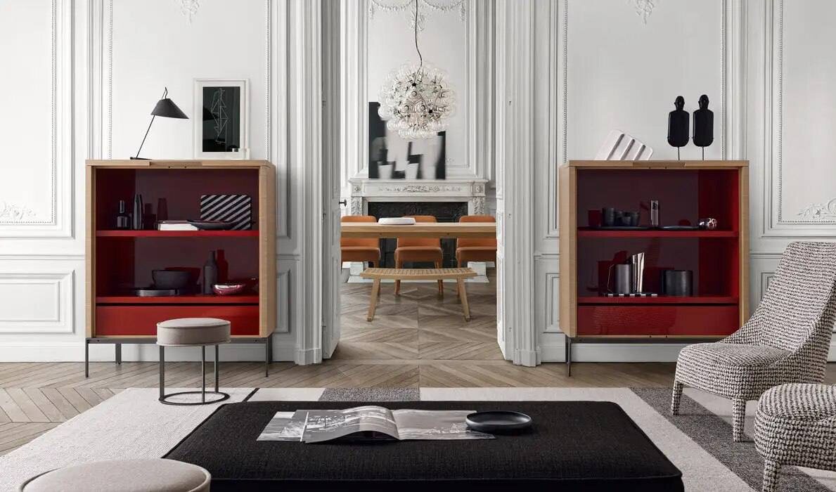 вручную, а покрытия наносятся в несколько этапов для идеальной глубины цвета. Каждая деталь тщательно проработана: от изящных ручек до идеально подогнанных фасадов, демонстрирующих высочайший уровень итальянского дизайна. Глянцевые красные лакированные отделения внутри создают смелый контраст комода. В наличии консоль Alcor, остальные модели коллекции доступны под заказ. Для связи: @triointeriorbot
