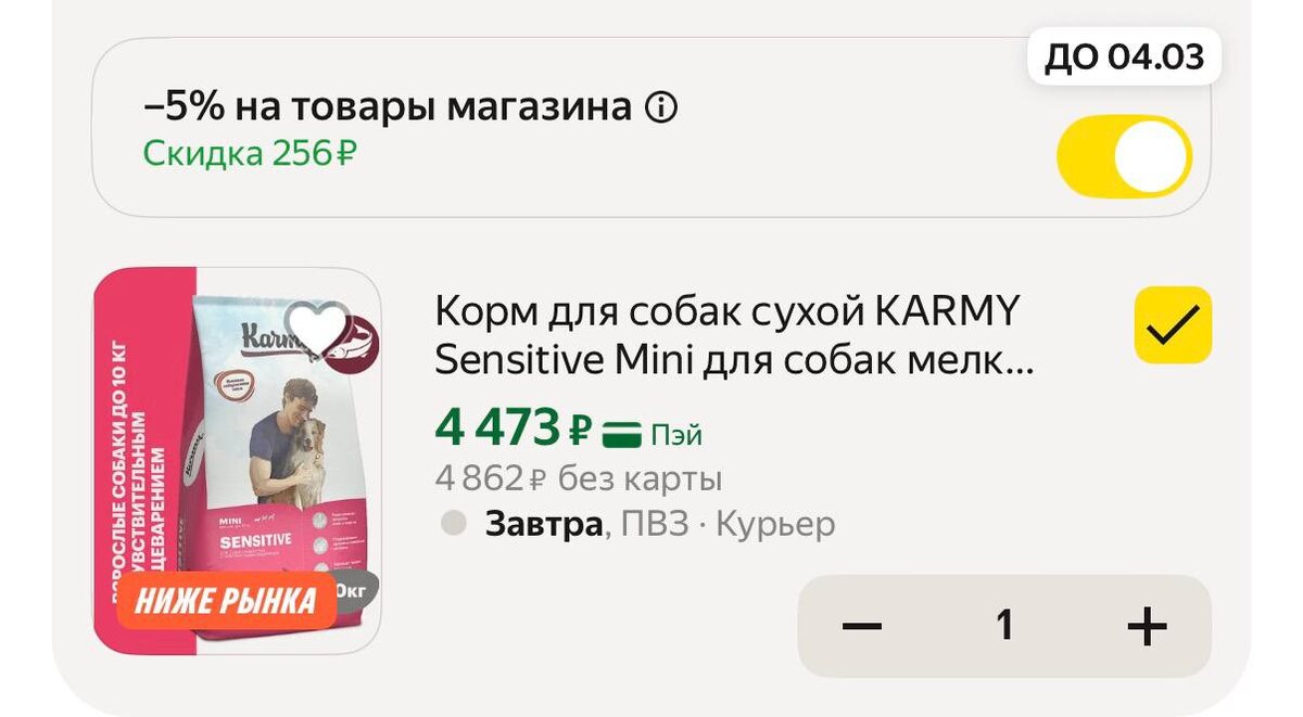 Цена с промо RE4XHNKK Корм для собак сухой KARMY Sensitive Mini для собак мелких пород с чувствительным пищеварением, Лосось. https://market.yandex.ru/cc/8WRkp9 🛍 JANU55-AF - Скидка 100 ₽ на один любой заказ при покупке от 5000 ₽ ✅ Канал по скидкам 🔣 Бот с промокодами