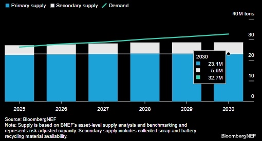 В ближайшие годы предложение на рынке меди должно стабильно отставать от спроса. Дефицит предложения к 2030 году должен вырасти до нескольких миллионов тонн. Источник: BloombergNEF. Резкий рост цен на медь, вызванный стремлением сверхдержав накопить металлы, необходимые для инфраструктуры искусственного интеллекта или оборонной, военной промышленности, будет определять тенденции инфляции, инвестиций и слияний и поглощений в 2026 году. Цены на медь выросли на 16% за три месяца, поскольку рост цен на промышленные металлы перевесил снижение цен на топливо, что привело к росту индекса Bloomberg Commodities. Когда конфликт России и Украины подстегнул рост индекса в 2022 году, инфляция ускорилась шесть месяцев спустя. Внешняя политика президента Дональда Трампа, ориентированная на добычу ресурсов, усугубила накопление металлов и способствовала росту активности в сфере слияний и поглощений. По прогнозам BloombergNEF, глобальный дефицит меди в 2026 году будет сохраняться и нарастать. К 2030 го