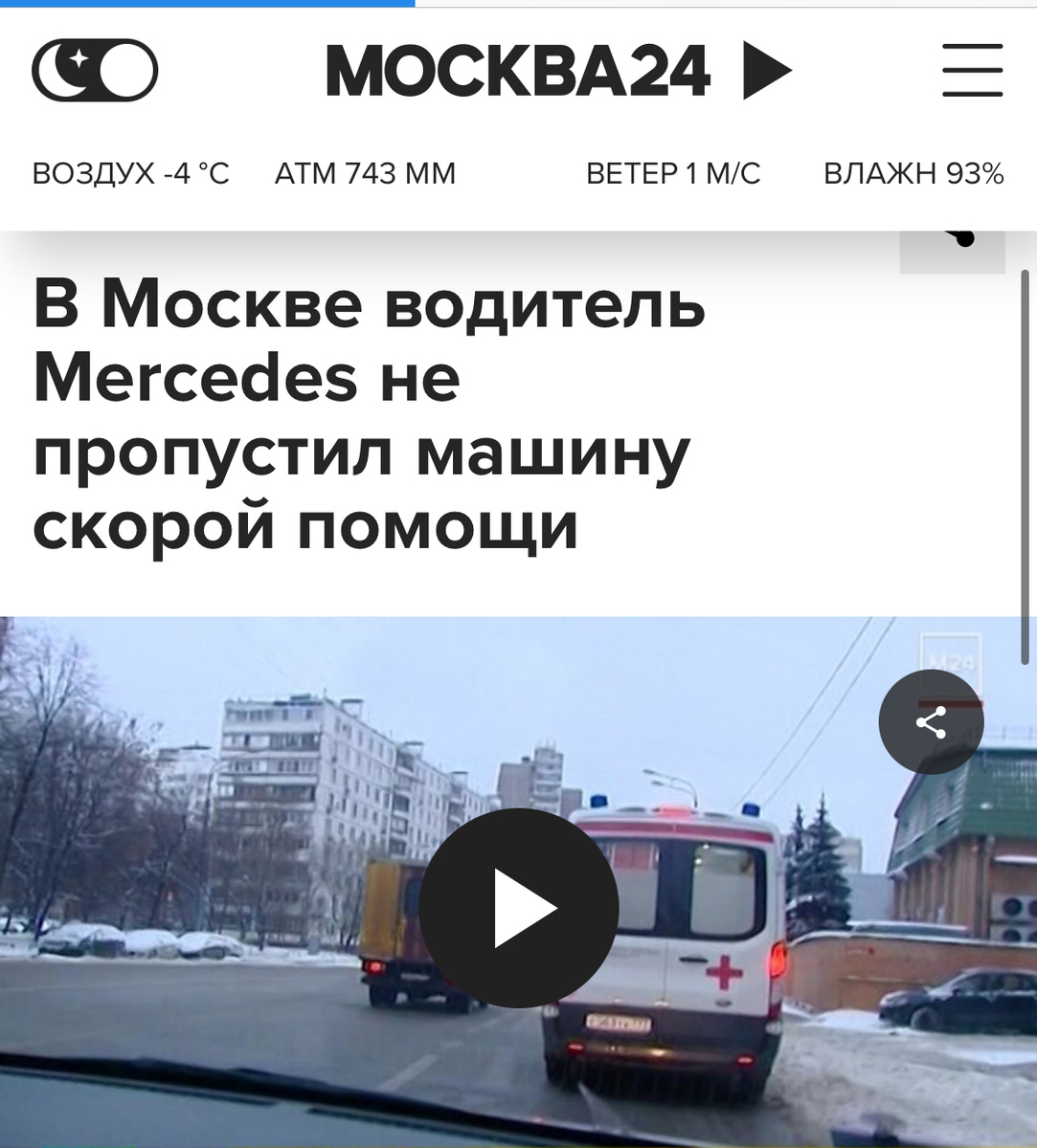 Вчера ко мне обратились с телеканала «Москва 24» прокомментировать ситуацию на видео, где водитель не пропускает скорую помощь, двигающуюся с включённым спецсигналом (сиреной). Посмотреть сюжет можно здесь: