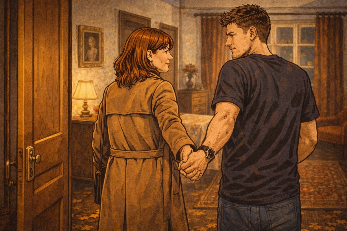 Все главы После набережной они шли вдоль тихих улочек, и Максим заметил, что его сердце всё ещё стучит быстрее обычного. Елена предложила зайти к ней, просто согреться и немного отдохнуть. Он почувствовал, как стеснение вновь подкрадывается, но желание идти с ней рядом оказалось сильнее. Квартира была тёплой и уютной: мягкий свет лампы ложился на книжные полки, аромат кофе и недавно приготовленного ужина наполнял пространство. Елена сняла пальто, и её взгляд, мягкий, но уверенный, сказал ему: «Можно расслабиться». — Присаживайся, — сказала она, указывая на диван. — Я не угощу тебя сразу, если ты не хочешь, но мы можем просто… быть рядом. Максим сел осторожно, чуть поодаль, словно боясь нарушить невидимую границу. Но каждый раз, когда их плечи случайно касались друг друга, он ощущал тепло, которое было одновременно странным и манящим. — Твои руки… — пробормотал он, почти шепотом, — они такие… живые. Елена слегка улыбнулась, наклонившись к нему: — Иногда достаточно одной руки, чтобы поня