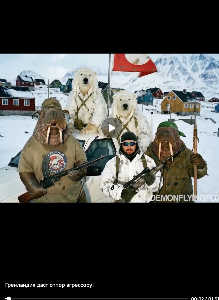 У меня есть по этому поводу вопрос, а на чьей стороне выступает просроченный Зе? Чью сторону он будет поддерживать? Он отправит своих "птах Мадяра" защищать Гренландию или обеспечивать атаку войск США? Скорее всего Зе будет какое то время юлить. Он не будет высказывать свой выбор в этом конфликте открыто. Будет помалкивать. Ему опасно делать выбор за ту или иную сторону.