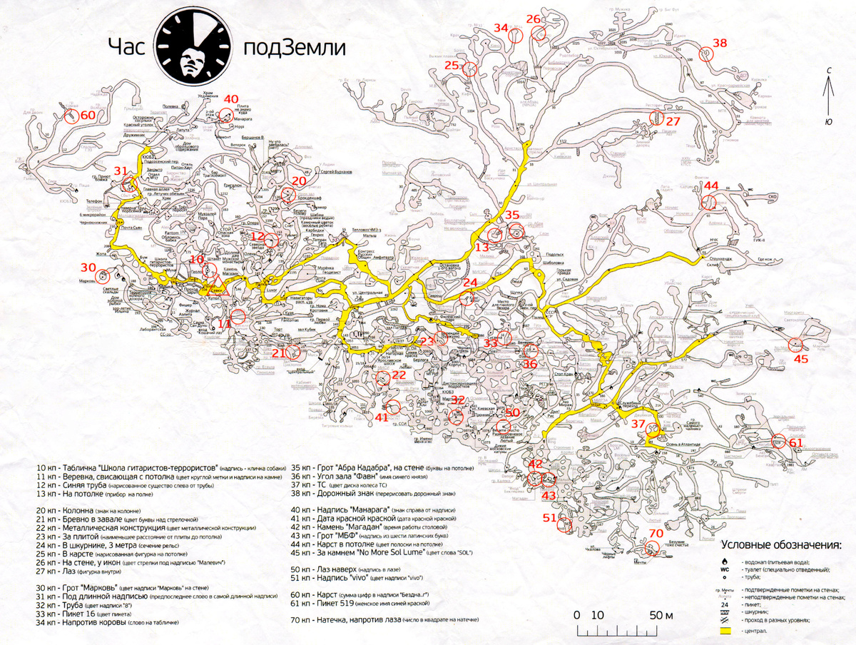 Я знаю, вы погуглили и нашли карту Съян, круто. Но она не очень карта в ориентировщицком понимании, там не очень точные азимуты, а ориентиры (а там ориентируются по надписям на стенах и всяким артефактам) часто сбивают или переносят (потому что не любят чужаков), а длины штреков нарисованы чисто чтобы сходились сбойки, не более…