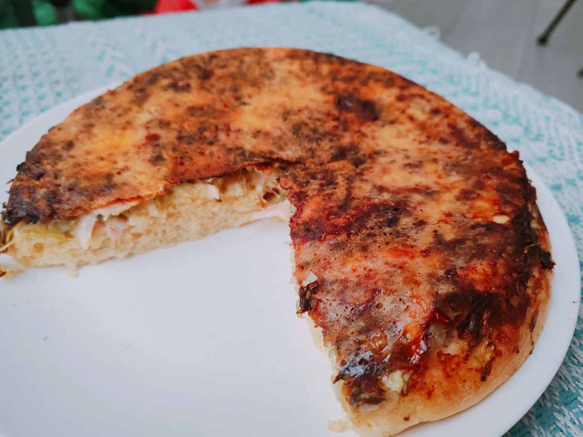 🍗🥗 ▌ 🍽️ Ингредиенты: Для начинки: - Курица копченая — 200 г 🍗 - Салат айсберг — 200 г 🥗 - Сыр — 50 г 🧀 - Майонез — 100 г 🧀 - Чеснок — 1 зубчик 🌶️ Для теста: - Яйца — 3 шт. 🍳 - Оливковое масло — 3 ст. л. 🧴 - Миндальная мука — 3 ст. л. с горкой (90 г) 🌰 - Разрыхлитель — 2 ч. л. 🧂 - Сыр ломтиками (российский) — 100 г 🧀 ▌ 🍳 Приготовление: 1. Подготовка начинки: - Курицу нарезать небольшими кусочками. - Салат айсберг нарезать соломкой. - Сыр натереть на терке. - Чеснок измельчить. - Смешать все ингредиенты для начинки, добавить майонез и хорошо перемешать. 2. Приготовление теста: - В миске взбить яйца. - Добавить оливковое масло, миндальную муку и разрыхлитель. Хорошо перемешать до однородной массы. 3. Сборка пирога: - Разогреть сковороду на самом маленьком огне. - Выложить на дно сковороды ломтики сыра (100 г). - Сверху выложить начинку и накрыть крышкой. Тушить около 5 минут. - Вылить тесто на начинку. - Готовить под крышкой на