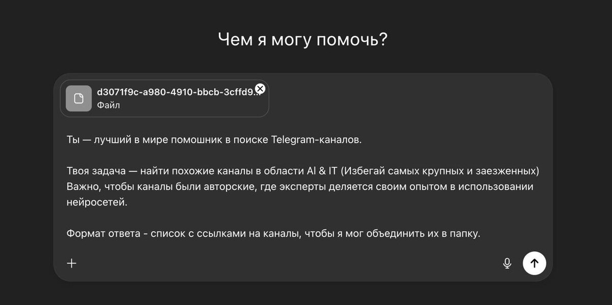 ? Следующий год обещает стать переломным для AI и IT. Многие аналитики уверены: в 2026 хайп вокруг ИИ выйдет на максимум — даже мощнее, чем после появления ChatGPT. В такой реальности важно не просто читать новости, а вовремя понимать изменения и сразу пробовать их на практике. Я собрал тг-каналы, которые читаю сам, и попросил ChatGPT найти похожие (промпт — на скрине). Результат — отличная подборка экспертных каналов. Внутри: — Вайб-кодинг и бесплатные уроки автоматизации — Нейрогенерация фото и видео — AI-новости + подборки полезных промптов Если хотите не упустить 2026 год — подписывайтесь на лучшие AI/ITканалы, которые помогут вам в развитии!