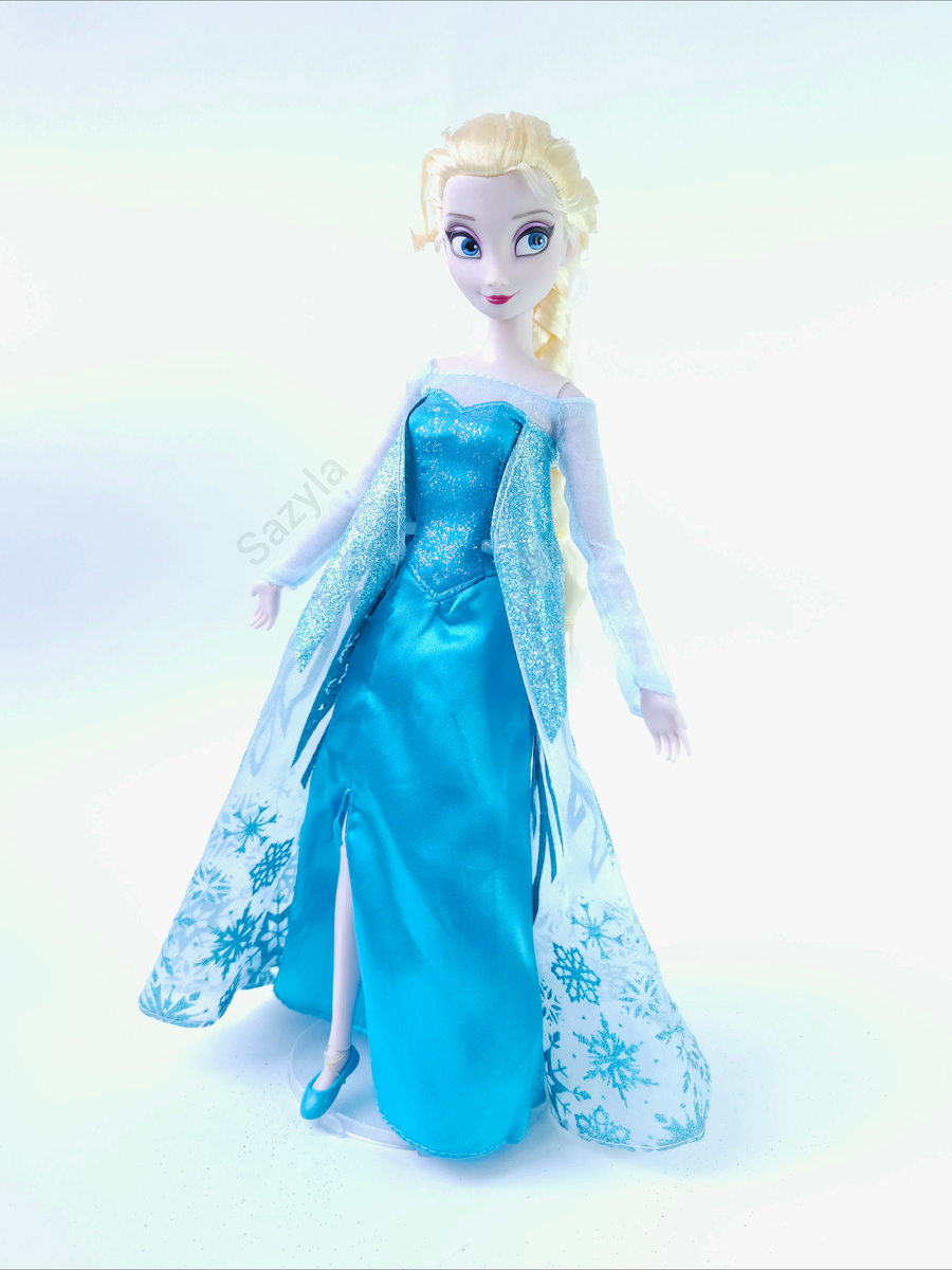 Прическа у мультяшной Эльзы достаточно сложная, так что я рада, что у куклы все волосы залачены насмерть. Может и не один в один с мультом, но смотрится похоже, да и волос, если посмотреть, достаточно много.
