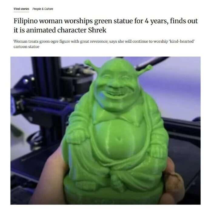 Глобальный совет по цифровой этике и религии (GCDER) сегодня официально опубликовал доклад «Новый Пантеон: Влияние медиа-франшиз на теологию поколения Альфа». Документ, вызвавший бурю негодования в Ватикане и панику в юридическом отделе Universal Pictures, признает «Шрекианство» (и сопутствующие ему культы поп-культуры) полноценным квазирелигиозным движением. Прецедентом, запустившим этот процесс, официально назван «Филиппинский инцидент 2024 года», когда визуальное сходство между буддийским божеством Хотеем и зеленым огром привело к непреднамеренному, но искреннему поклонению. Теперь же, спустя восемь лет, мы видим, как искренность подменяется иронией, а ирония — новой искренностью.