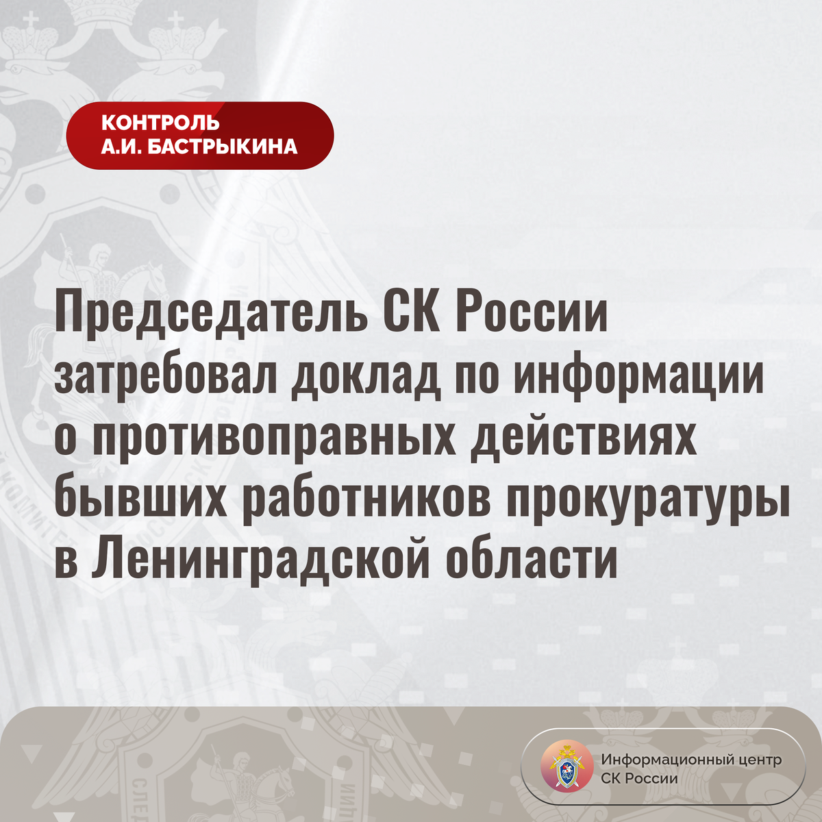 #СледственныйКомитет #СКРоссии #СК #ИЦСКР #ИнформационныйЦентр #АлександрБастрыкин #ПредседательСКР #КонтрольПредседателяСКР #КомментарийКонтроль #ЛенинградскаяОбласть