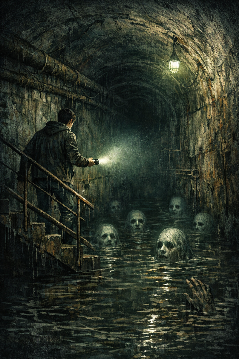 Подвал уходил ниже, чем должен был. Лестница была мокрой, на стенах — следы ладоней, будто кто-то пытался выбраться вверх. Внизу стояла вода по колено. В ней отражались не стены, а лица. Их было много. Все смотрели вверх. Все ждали.