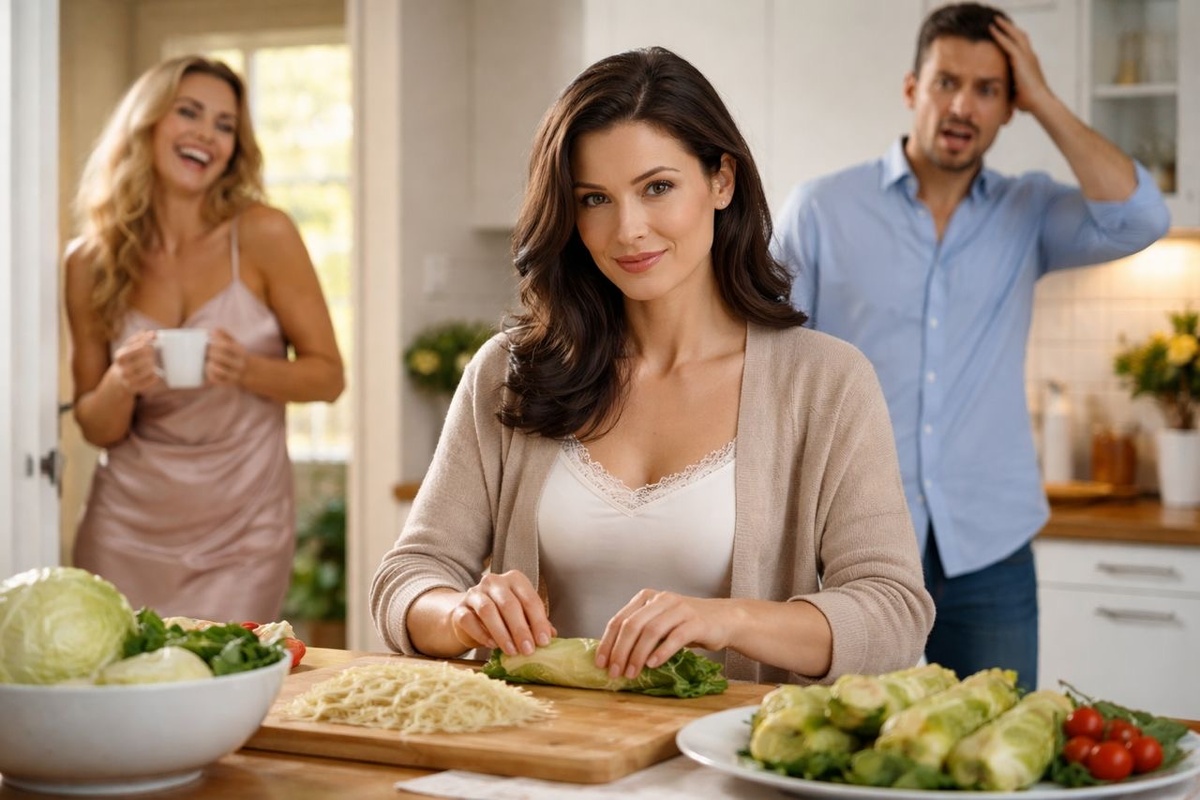 Любовница молча вышла, понимая, что проиграла ещё до того, как начала бороться. Муж остался один на кухне. Он почувствовал, как земля уходит из-под ног. Всё его величие, хитрость и тайные игры рухнули перед капустой, аккуратными рулетиками и спокойной силой женщины, которую он всегда недооценивал.