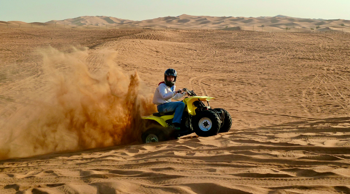 Представьте место, где нет ни одного дерева, только бесконечные волны из песка, уходящие за горизонт. Где тишина настолько громкая, что слышно биение собственного сердца. А теперь добавьте к этой картине смех, визг от восторга и рёв моторов. Так начинается одно из самых ярких путешествий, которое только можно найти. И всё стартует даже раньше, чем кажется. Перед тем как покорять высокие дюны на мощных машинах, нам дали почувствовать песок и скорость на маленьких, но шустрых квадроциклах. Это была весёлая разминка! Пылясь в облаке золотого песка, можно было почувствовать себя гонщиком, учась управлять техникой на пологих холмах. Адреналин начинал нарастать с первых же минут. Это не про осмотр достопримечательностей, это про чувства. Про то, как за один день можно пережить шквал эмоций и ощутить магию востока. Всё начинается ещё затемно, когда солнце только собирается проснуться. Уже в машине по дороге из города вглубь песков возникает странное чувство. Современные небоскрёбы, идеальны