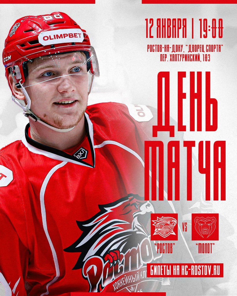 ⛸️ 🏒Сегодня хоккейный клуб «Ростов» сыграет с ХК «Молот»