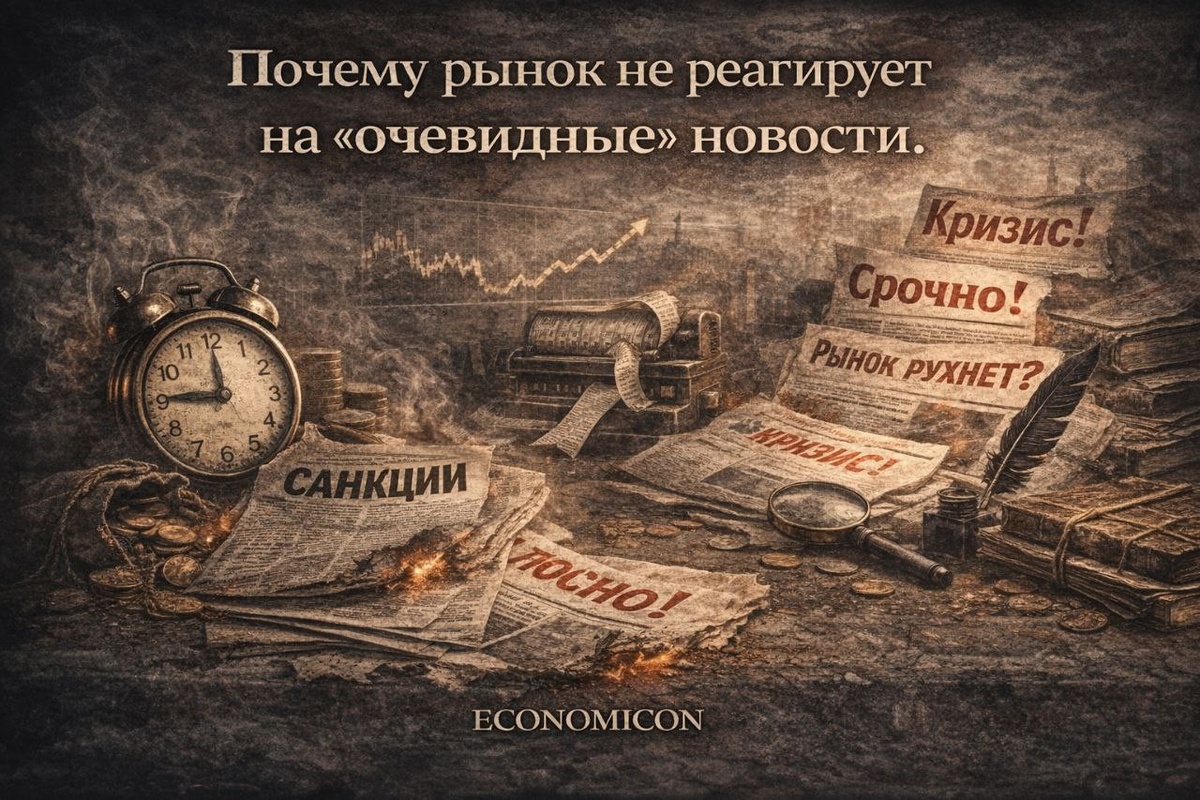 Это один из самых частых вопросов, которые вообще возникают у человека, впервые начавшего смотреть на рынок внимательно. Вышла новость. Громкая. Вроде бы понятная. Лента кипит, комментарии кипят, аналитики объясняют, почему теперь точно должно. А рынок — молчит. Или вообще идёт в другую сторону. В этот момент обычно возникает ощущение, что что-то сломалось. Но ломается не рынок. Ломается ожидание. Рынок узнаёт новости раньше, чем мы Неприятная правда в том, что заголовок — это конец процесса, а не его начало. Пока новость доходит до Telegram, рынок уже пережил её в виде слухов, утечек, расчётов и чужих решений. Поэтому фраза «рынок не отреагировал» чаще всего означает: рынок отреагировал, но не при нас. «Очевидно» — это слово не для рынка То, что кажется очевидным читателю, рынку обычно неинтересно. Рынок смотрит не на сам факт, а на разницу между тем, что ждали, и тем, что получили. Ставку подняли? Хорошо. Но на сколько ждали? Санкции ввели? Какие именно и как их будут обходит