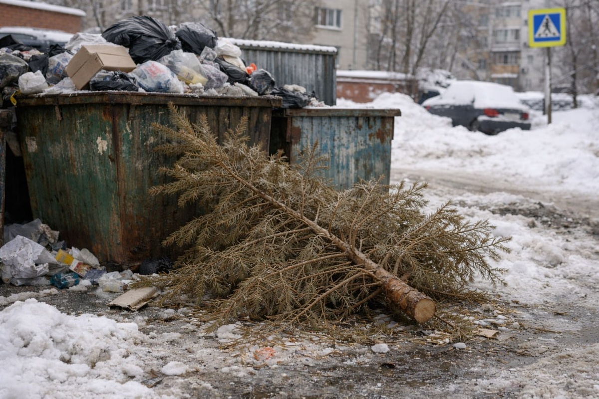 За вынос живой елки к обычному мусорному контейнеру грозит штраф до 3000 рублей
