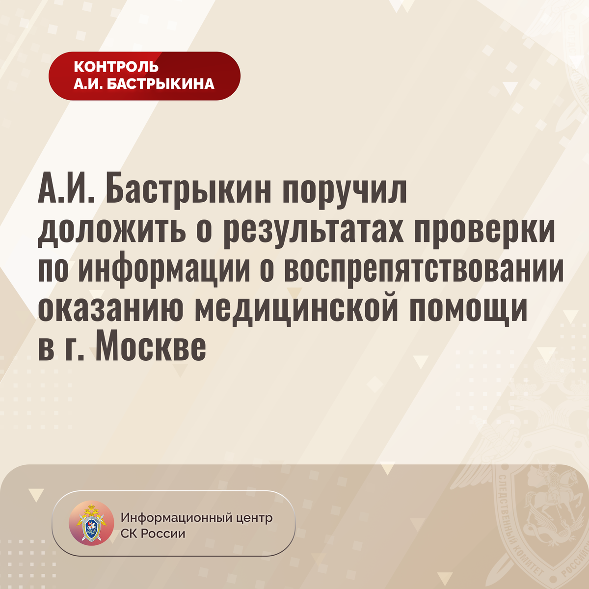 А.И. Бастрыкин поручил доложить о результатах проверки по информации о воспрепятствовании оказанию медицинской помощи