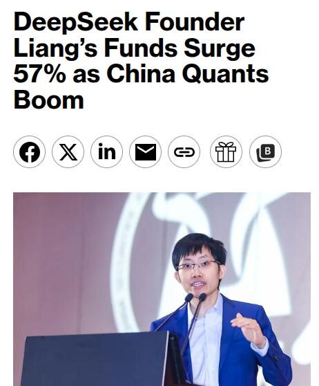 Речь про Ляна Вэньфэна (Liang Wenfeng) и его фонд Zhejiang High-Flyer Asset Management. По данным Bloomberg, 2025 год у них получился просто феноменальным: средняя доходность по фондам - 56.6%. Почему это важно для DeepSeek? Потому что такие результаты дают не просто “успешный год на рынке”, а реальные деньги, которыми можно оплачивать развитие ИИ: - зарплаты сильной команде - закупку GPU - серверы, сети, дата-центры - всё железо, без которого LLM не масштабируются Ключевые факты: - High-Flyer управляет капиталом более $10 млрд - занял 2-е место среди китайских квант-фондов с капиталом > $1.4 млрд - фонд заработал +56% → эти деньги фактически остаются у владельца фонда (Ляна). - если прикинуть выручку по стандартной схеме 1% management fee + 20% performance fee, получается $700+ млн - и это выглядит особенно мощно на фоне того, что бюджет DeepSeek на “топопвые” модели оценивался менее чем в $6 млн Интересный момент: в 2024 фонд отошёл от market-neutral и сделал ставку на long-only с