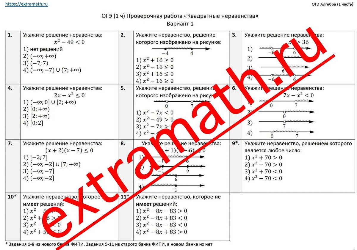 По этой теме у меня есть материалы: ОГЭ (1ч) Квадратные неравенства extramath.ru/p/18347 ОГЭ (2ч) Проверочные работы "Уравнения" и «Неравенства» в составе сборника "Задание 20" extramath.ru/p/18491 ЕГЭ база Метод интервалов extramath.ru/c/egeb ВПР10 Неравенства extramath.ru/p/18457